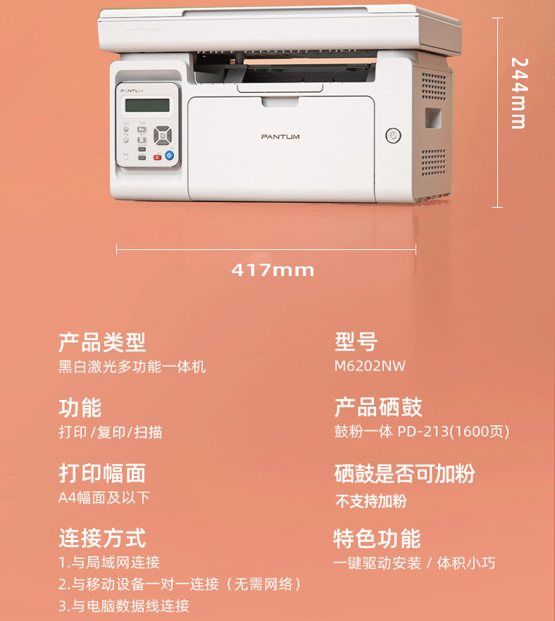 參數(shù) [品牌] 奔圖 [型號(hào)] M6202NW [毛重] 11.5KG